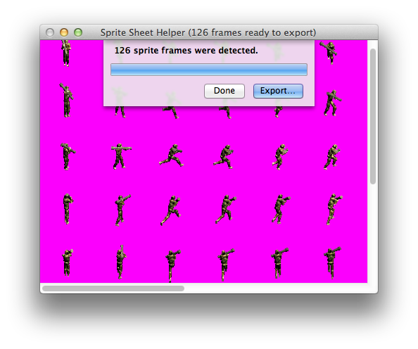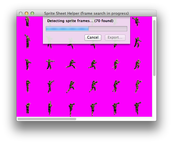 and Sprite Sheet Helper will begin automatically searching for animation frames.